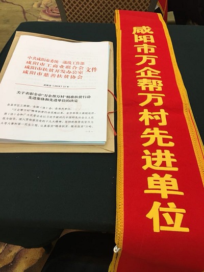 2018年8月寶塔山漆榮獲“咸陽市萬企幫萬村先進(jìn)單位”